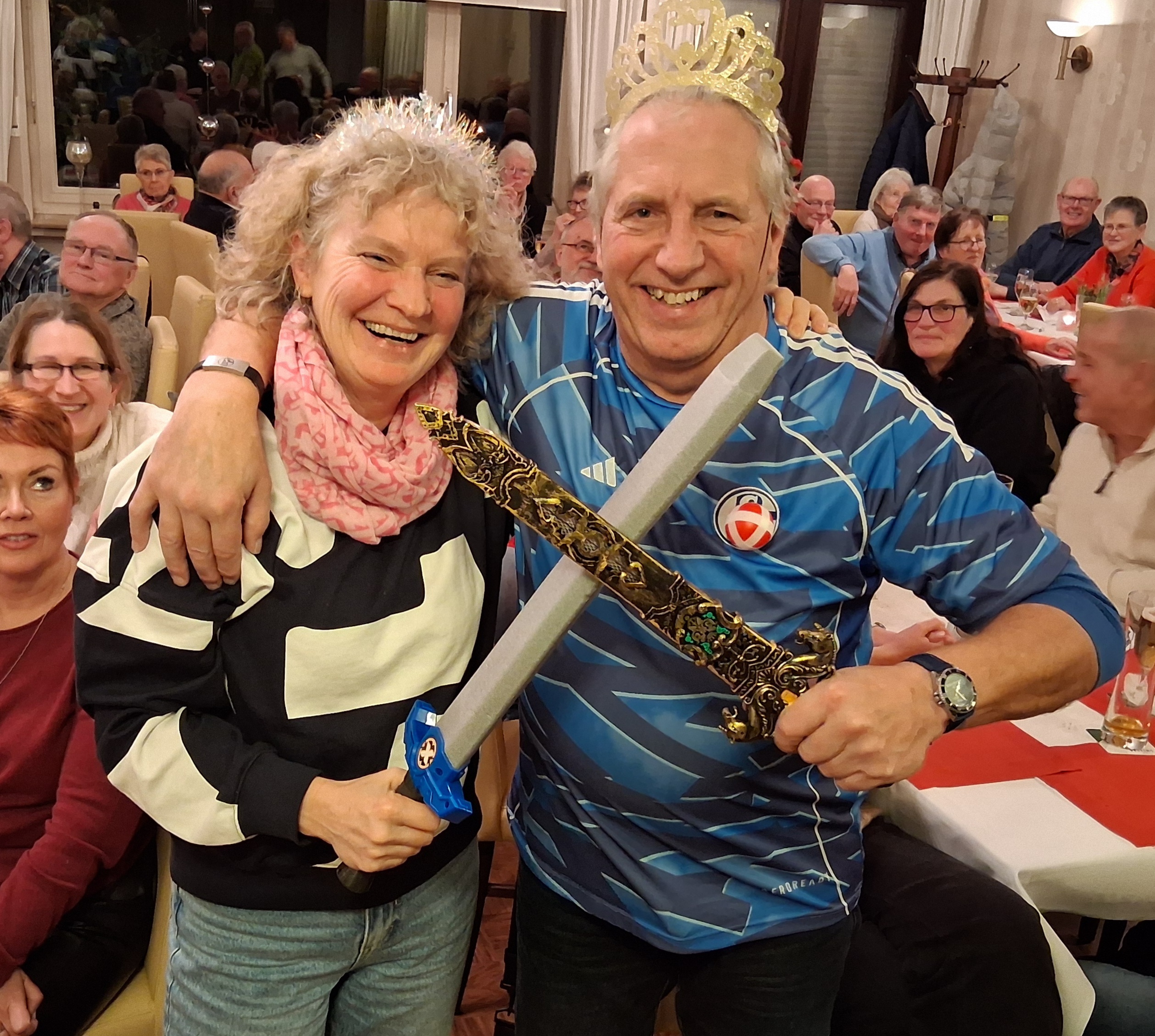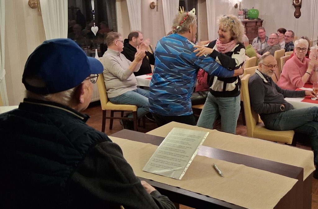 Siegerehrung für das neue SCP-Grünkohlkönigspaar Conny Kipp und Berthold Pott, alias „Berti der Erste“ beim Jahrestreffen der Senioren-Sportgruppe mit Grünkohlessen im Waldhotel Hilgemann.