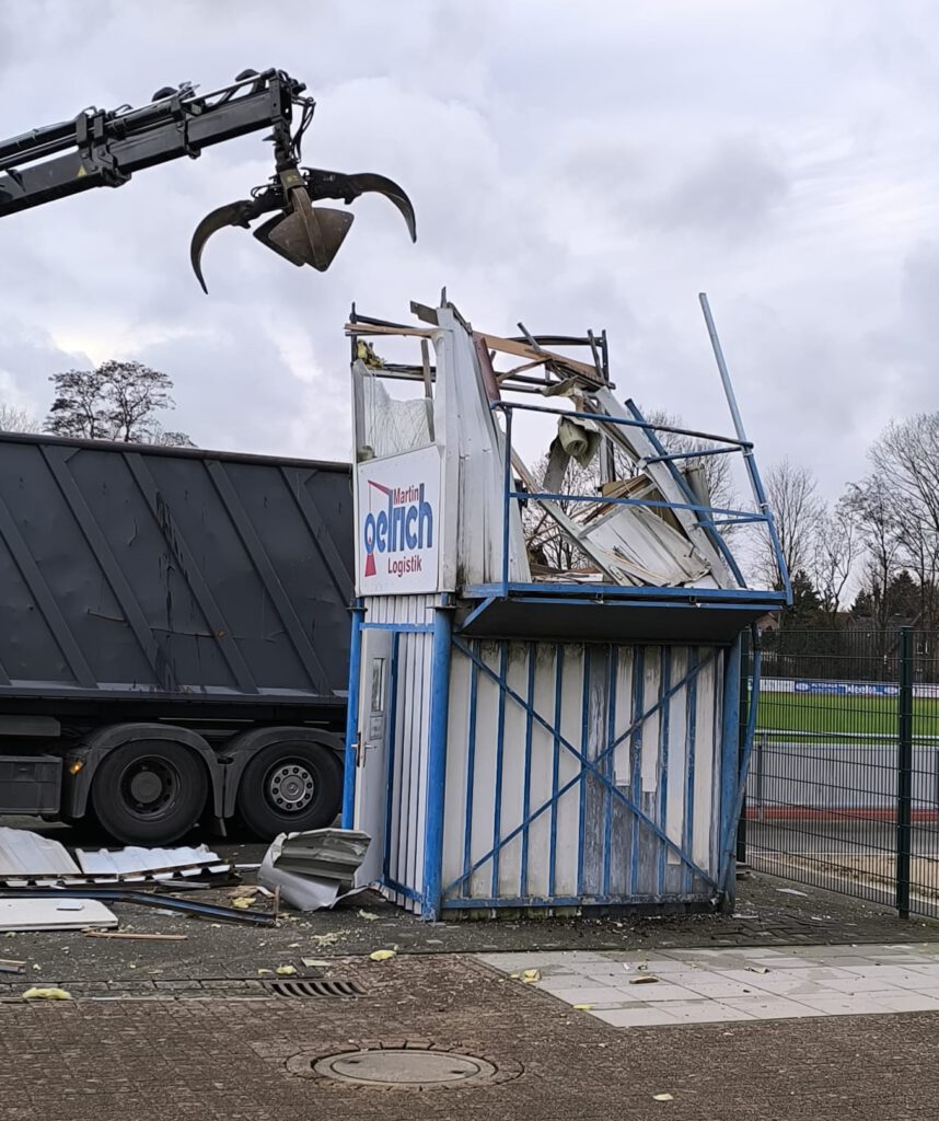 Der vereinseigene Verkaufspavillon und der Sprecherturm im Stadion an der Münsterstraße sind in die Jahre gekommen und wurden jetzt abgerissen.